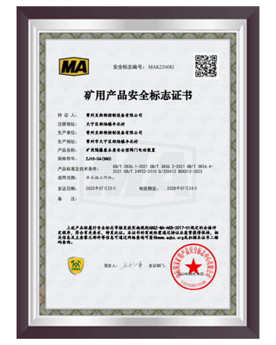 于2000年通過(guò) ISO9001:2000質(zhì)量體系認(rèn)證,建立了完善的產(chǎn)品質(zhì)量控制體系;2006 年6月取得全國(guó)工業(yè)產(chǎn)品生產(chǎn)許可證;2008年9月取得礦用產(chǎn)品安全標(biāo)志證書(shū);2012年取得8項(xiàng)礦用產(chǎn)品的專利證書(shū)。